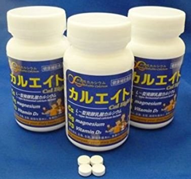 主要成分(サプリメント・化粧品):L-型発酵乳酸カルシウム、マグネシウム、ビタミンD3