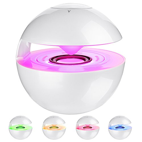 -. Title : Mini Bluetooth Speakers ,Wireless Round Sound Box Musicbox with Touch Button,Lights Color Change, Built-in Microphone and Support Micro SD Card Play for Phones PC Computer for Boy Girl - White