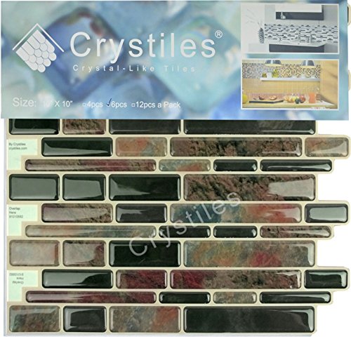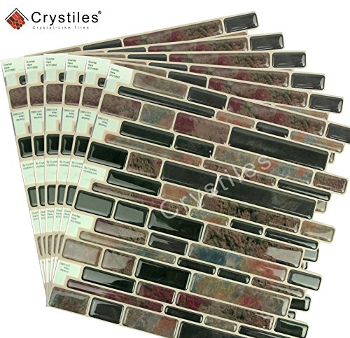 Crystiles Peel and Stick Self-Adhesive DIY Backsplash Stick-on Vinyl Wall Tiles for Kitchen and Bathroom Décor Projects, Item# 91010882, Multi-Color Marble Style, 10” X 10” Each, 6 Sheets Pack