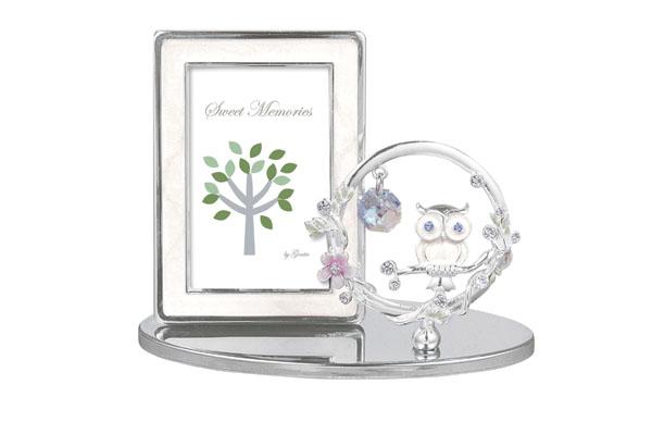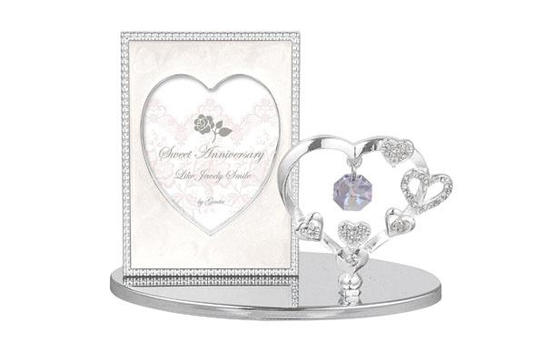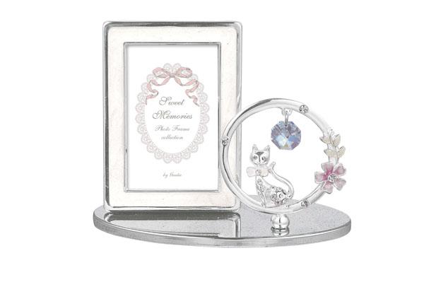 シルバーのモチーフに大粒のスワロフスキーがキラキラ輝くお洒落なミニフレーム。アニバーサリーギフトに最適です。