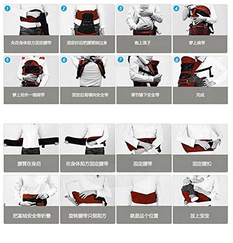 -. Feature : Material: Cotton twill / Max capacity is 25kg for baby who is from 3 to 48 months. / 5 different carry positions: front hipseat, face to face hipseat; backpack facing position,Forward Facing position,Inward Facing position / Package including: 1 x Hipster Carrier, 1 x Detachable Hat, 2 xDetachable Pinafore / Made in China