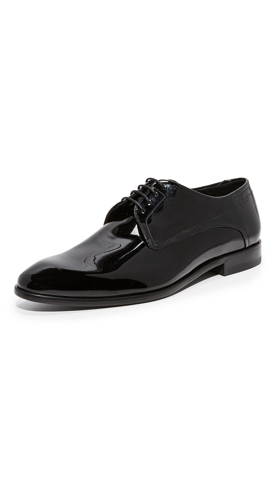 Round-toe HUGO oxfords in high-shine patent leather. Waxed laces. Welted to leather soles with rubber grips. Stacked heels. Full leather sock liner.Leather: Cowhide.Imported, India.This item cannot be gift-boxed.Style #HBOSS30132