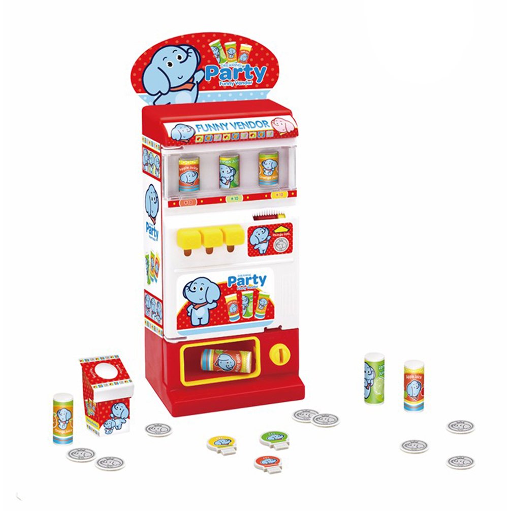 楽しいままごとのジュース販売機+空き缶入れのセット かわいいし、カラフルだ お店屋さんのごっこ遊び、異なる身分を体験、社会力アップ 飲料テープと専門インコ、鍵とおしゃれな展示看板付き 電池必要(別売り)