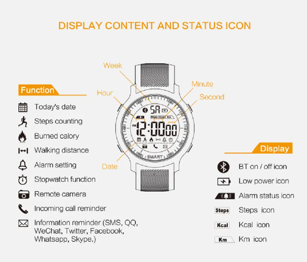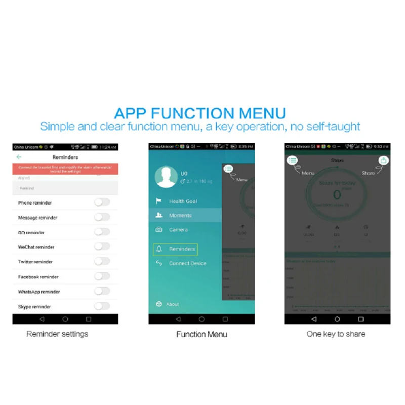 Function:Passometer,Alarm Clock,Call Reminder,Remote Control