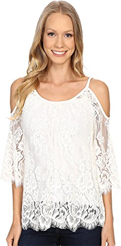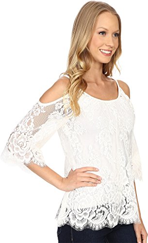 Cold-shoulder detail creates stunning style. Eyelash trim at cuffs and hemline. Scoop neckline. Three-quarter sleeve design. Straight, scalloped hemline. Base layer not included. 100% nylon; Contrast: 100% viscose. Hand wash cold, lay flat to dry. Made in the U.S.A. and Imported.