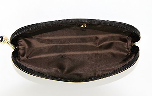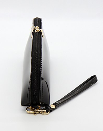 Myzin Women PU Patent Leather Long Clutch Purse Case Evening Wristlet Makeup Bag (Black)