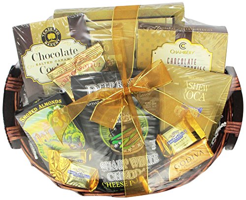 -. Feature : They are going to be thrilled when they open this beautiful, entirely kosher gourmet gift basket that is perfect for any occasion / It has a wonderful selection of Candies, Cookies and Snacks and features a Godiva Milk Chocolate Chocoiste Bar Almond Roca Butter crunch Candy, Coffee Masters Breakfast Blend Coffee, Chocolate Salted Caramel Cookies and more / This basket makes a fantastic impression on a smaller budget / Excellent Customer Service and Fast Shipping / Dim: 16 inch L x 12 inch W x 10 inch H