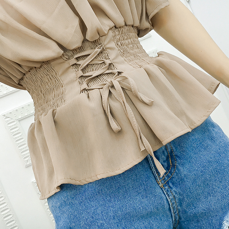 コーデ不要なセットアップ☆ウエストマークは流行のコルセット風♪ボリューム感のあるトップスでもグッと引き締まって見えます。