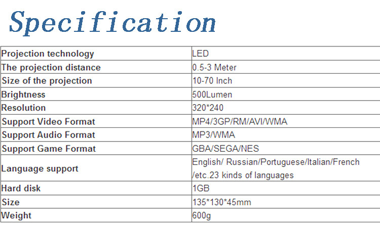 1* Projector Game Console 2* Joystick 1* Adapter