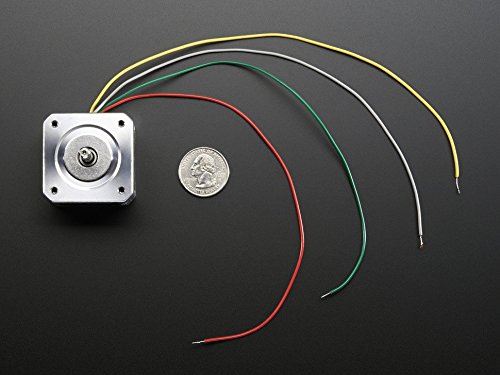 A stepper motor to satisfy all your robotics needs! This 4-wire bipolar stepper has 1.8° per step for smooth motion and a nice holding torque. The motor was specified to have a max current of 350mA so that it could be driven easily with an Adafruit motor shield for Arduino (or other motor driver) and a wall adapter or lead-acid battery. Some nice details include a ready-to-go cable and a machined drive shaft (so you can easily attach stuff). We drove it with an Adafruit motor shield for Arduino and it hummed along nicely at 50 RPM. To connect to our shield, put the wires in this order: Red, Yellow, skip ground, Green, Brown (or Gray)