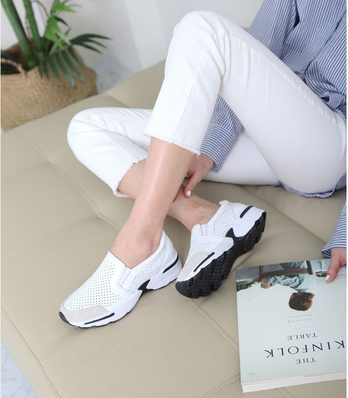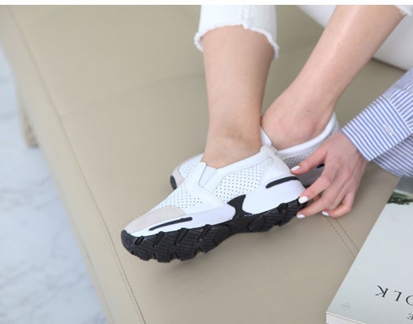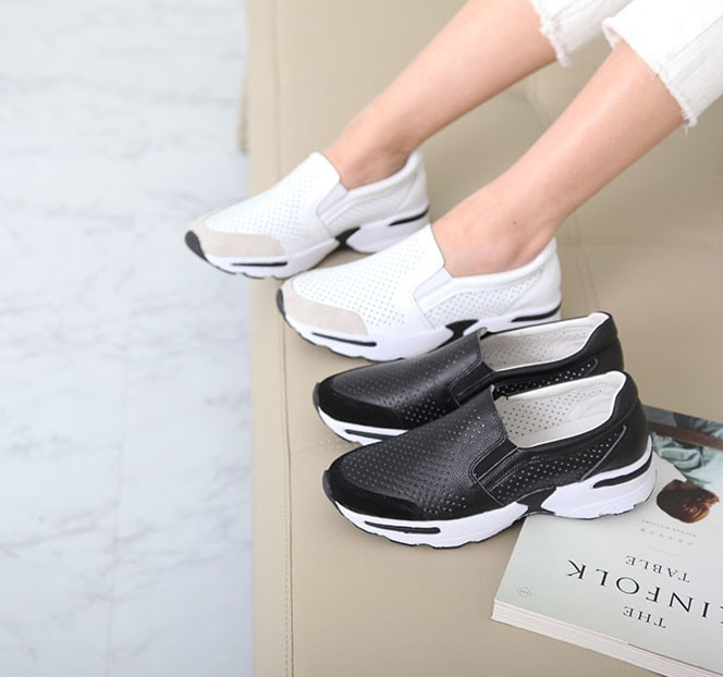 商品名:スリッポン レディース スニーカー 本革 レザー メッシュ 2018 春 ファッション 靴 婦人靴