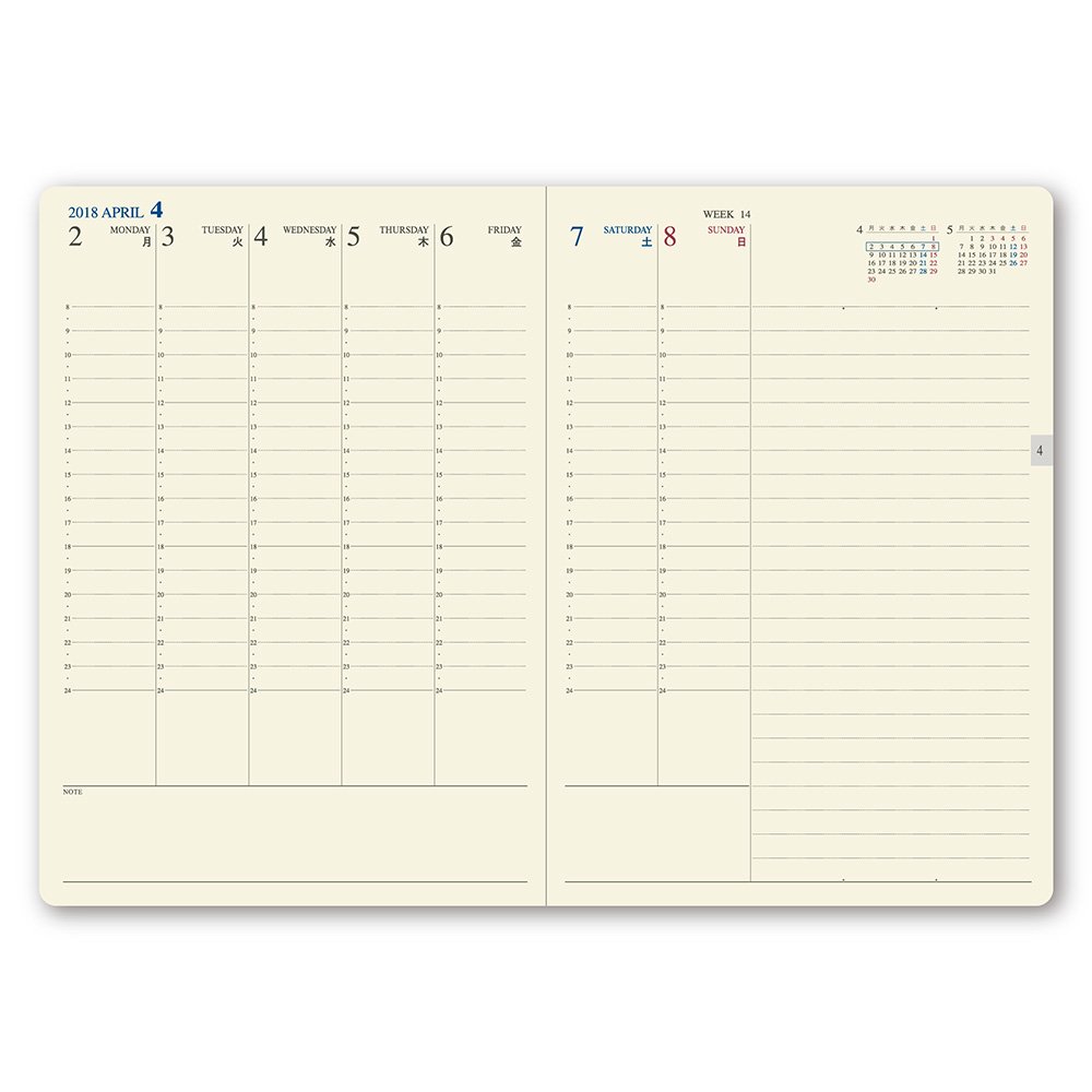 【Week Page】 Vertical type with a time axis arranged on the whole surface in a spread one week.