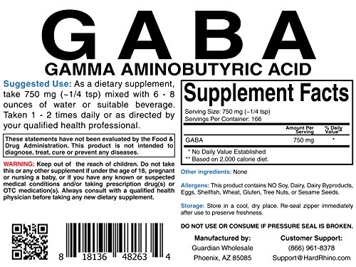 Hard Rhino GABA (Gamma Aminobutyric Acid) Powder, 125 Grams (4.4 Oz), Unflavored, Lab-Tested, Scoop Included