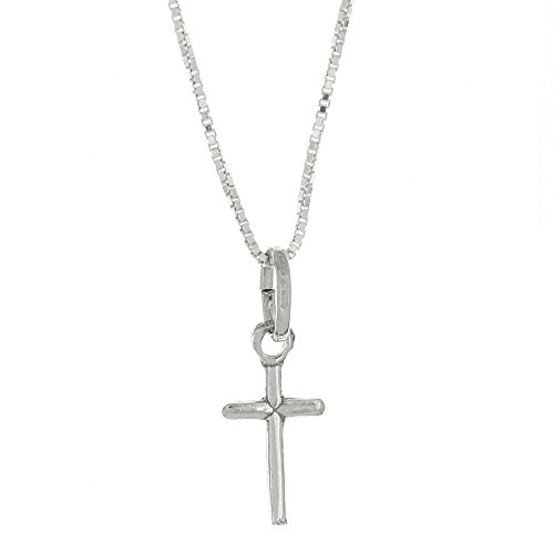 -. Title : Sterling Silver Polished Simple Tiny Small Cross Pendant on Box Chain Necklace