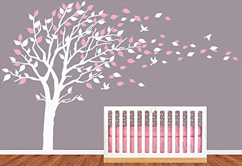 LUCKKYY Tree Blowing in the Wind Tree Wall Decals Wall Sticker Vinyl Art Kids Rooms Teen Girls Boys Wallpaper Murals Sticker Wall Stickers Nursery Decor Nursery Decals (White+pink)