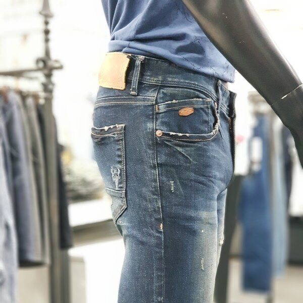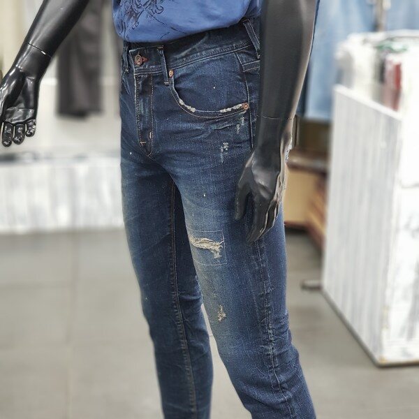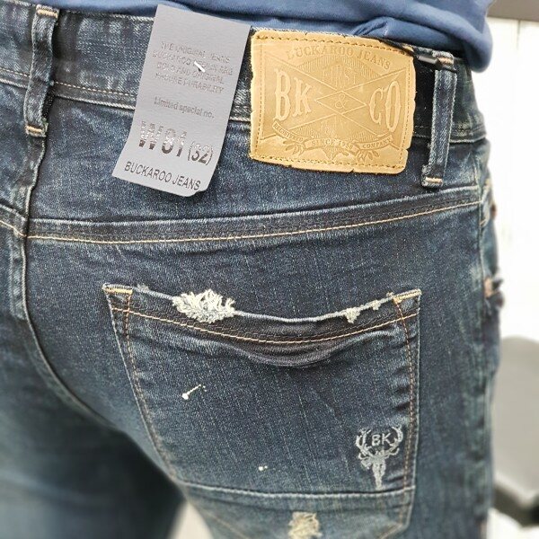 버커루 남성 리얼 데미지 스키니 데님팬츠입니다.데미지가 포인트가 되는 딥한 컬러감의 제품으로 워싱과 데미지 디테일이 아주 매력적인 제품입니다.