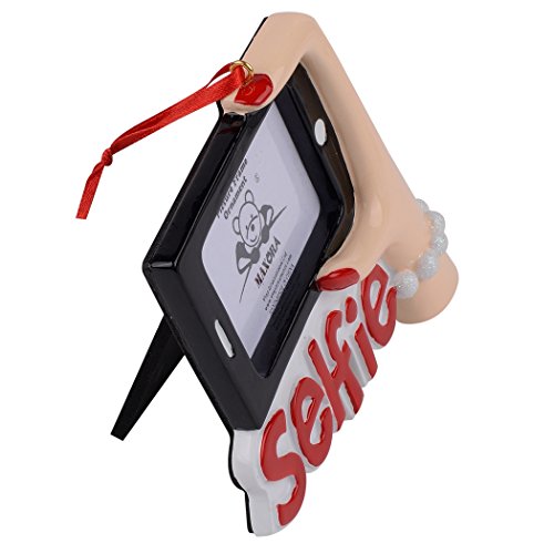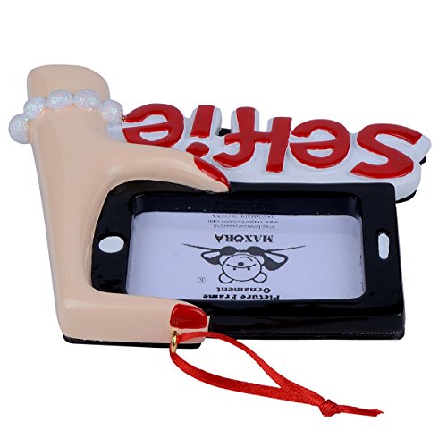 Ornament dimensions: W4-2/5 x H3-9/10 inches, 3.46 ounces. Photo frame's dimensions:W2-1/4 x H1-1/2 inches. Made by environmental polyresin material