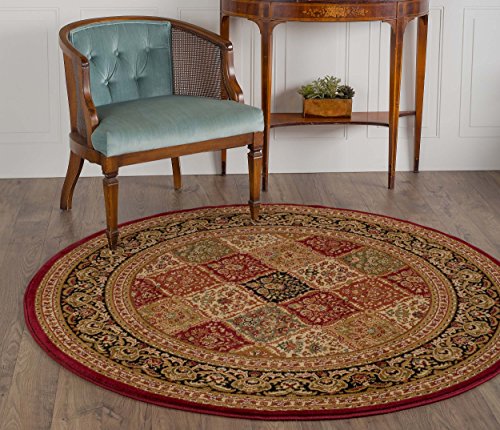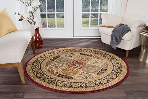 Red 5 ft. 3 in. Round Traditional Area Rug