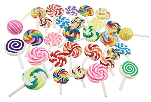 Cute Colorful Handmade Mini Artificial Sweet Lollipop Canday 30 Pieces For Store Party Home Decoration Handwork DIY Phone Case (Assorted Color)