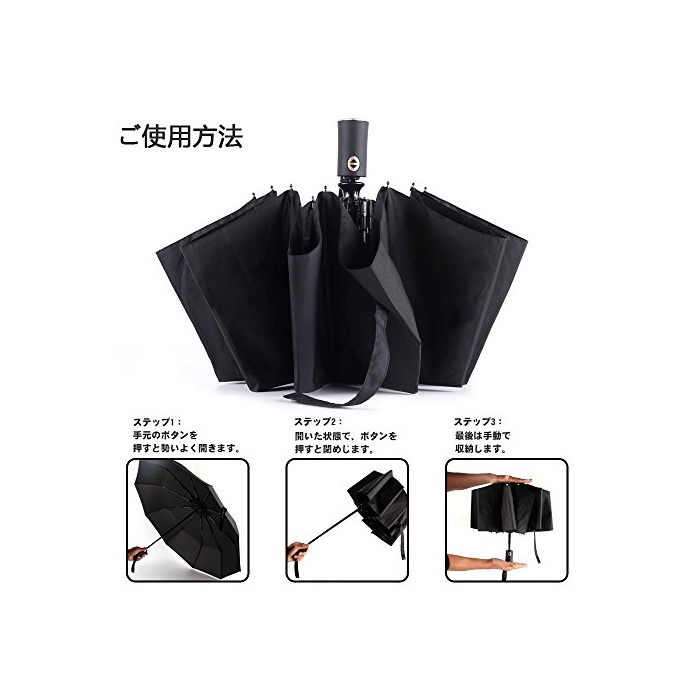 【자동 개폐】눈앞의 개폐 스위치로 우산이 열고, 원 푸쉬로 친뼈가 닫힙니다.다른 접어 다다미산과 같이 친뼈를 1개씩 접을 필요가 없는 때문에,여는 시뿐만 아니라 닫는 시도 간단합니다.짐이 많은 시나 한쪽 손이 막혀 있는 시,차의 타고 내리는 사람 등 편리합니다.