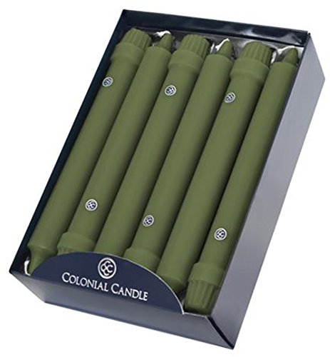 Colonial Candle Classic Unscented Dripless Dinner Tapers in Moss Green, 8" - Set of 12