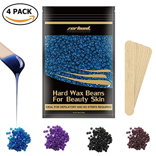 Hard Wax Beans Hair Removal - Zerhunt Stripless Wax Beads With 10pcs Spatulas For Waxing Warmer Kit, 4 Pack,14oz / 400g