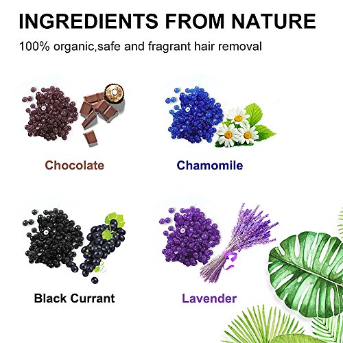 【NATURAL HARD WAX BEANS】- 4 different flavors for your choose. (chamomile / lavender / chocolate / black currant).Our hard wax beans made from natural ingredients like rosin and beeswax.100% non-toxic.FDA approved.We guarantee the safety!
