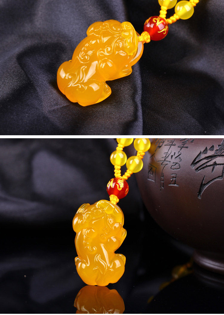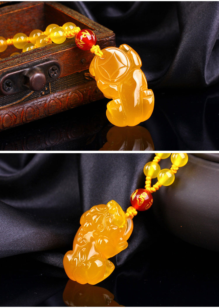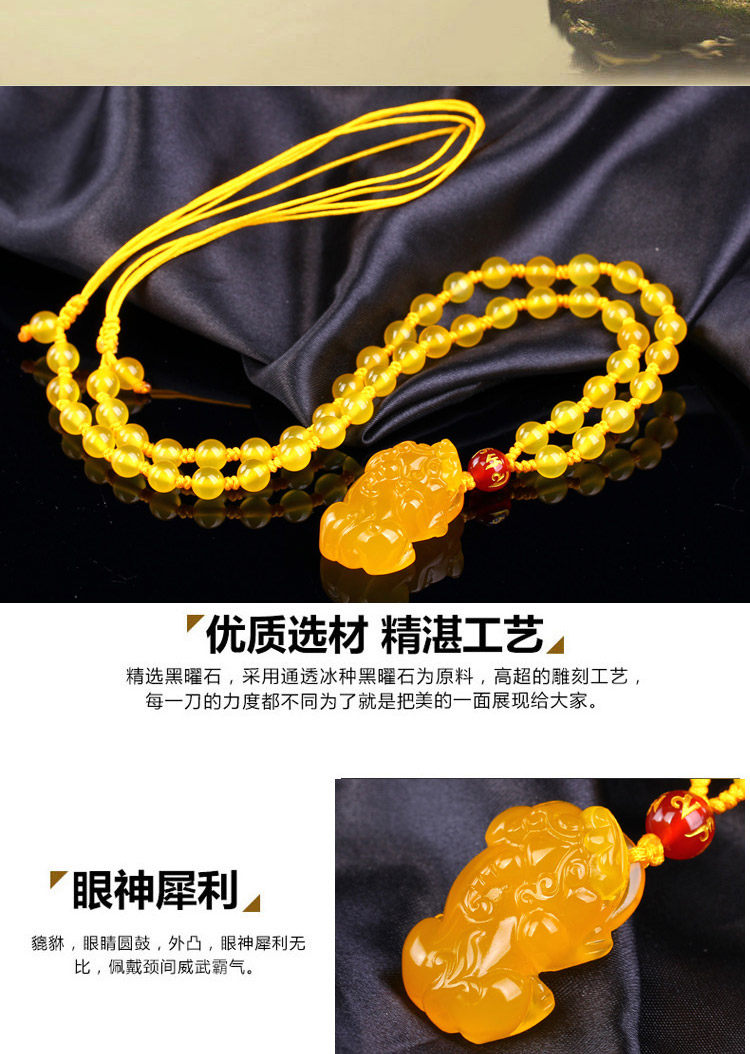开光天然黄玉髓貔貅吊坠 水晶玛瑙貔貅项链橘子石吉祥物男女饰品