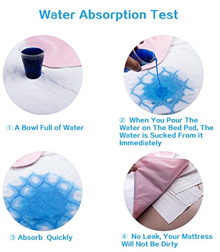 4 Layers Protection: Soft quilted cotton brushed polyester quilted top surface Noiseless waterproof barrier middle layer Super absorbent high density inner layer A latex-free waterproof non slip backing Two tuck-in wings for a secure fit to the bed Measured 36" x 36" inch