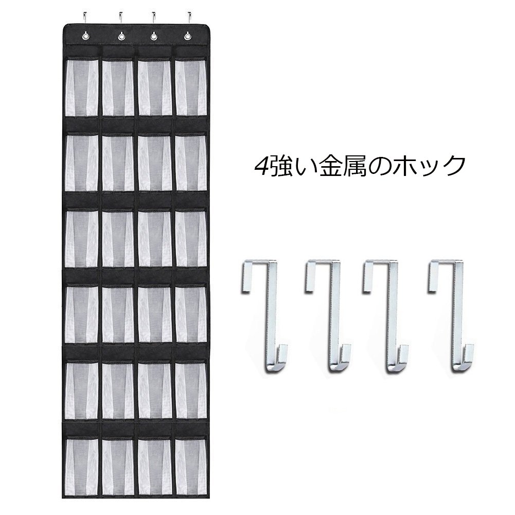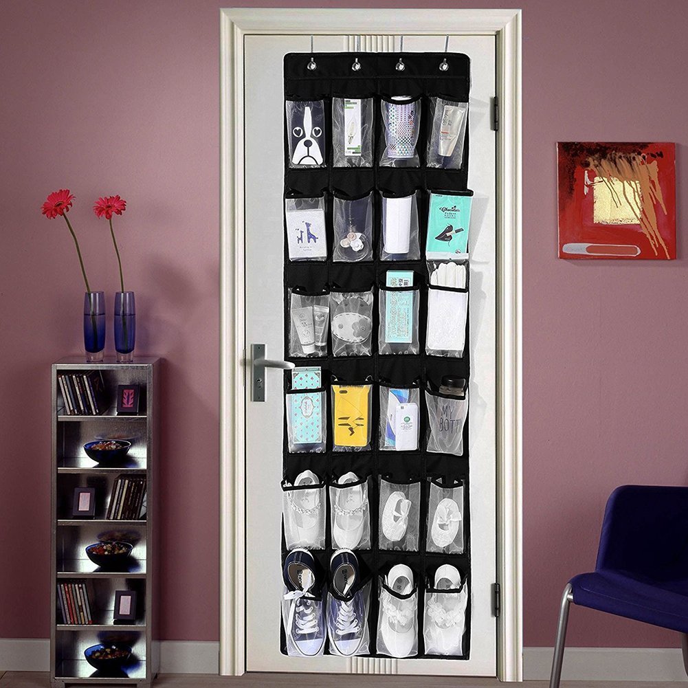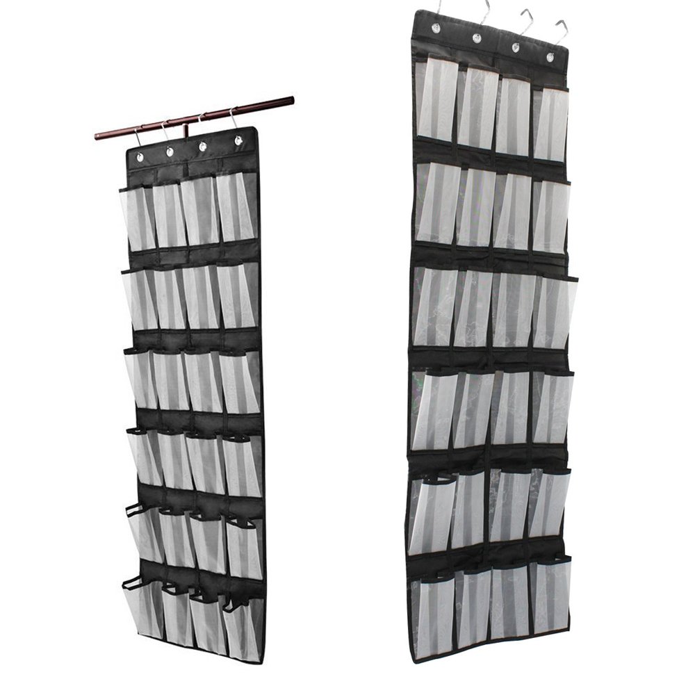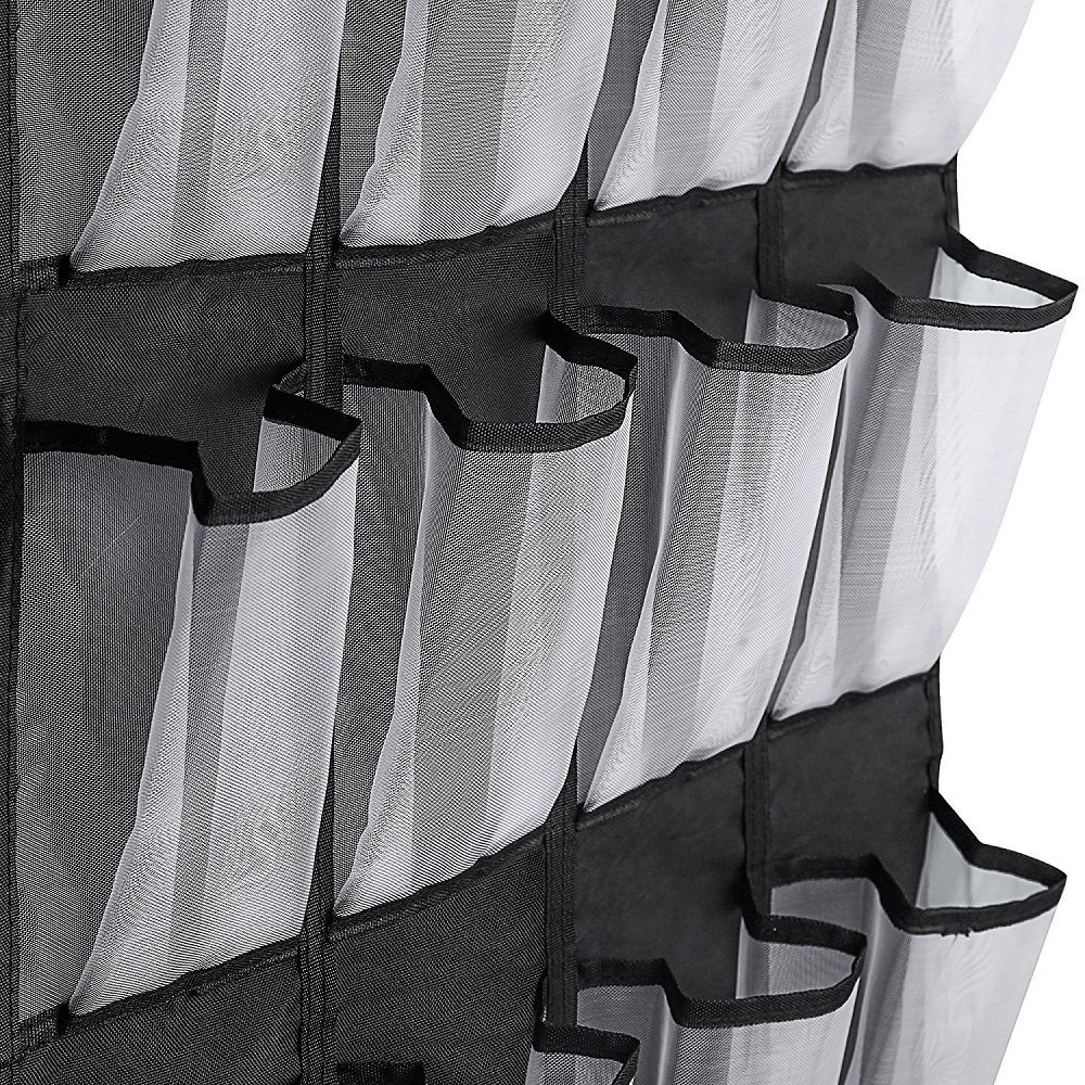 It has 24 clear vinyl pocket that easily saves and assembles the organizer of the door shoe and protects up to 12 pairs of shoes.