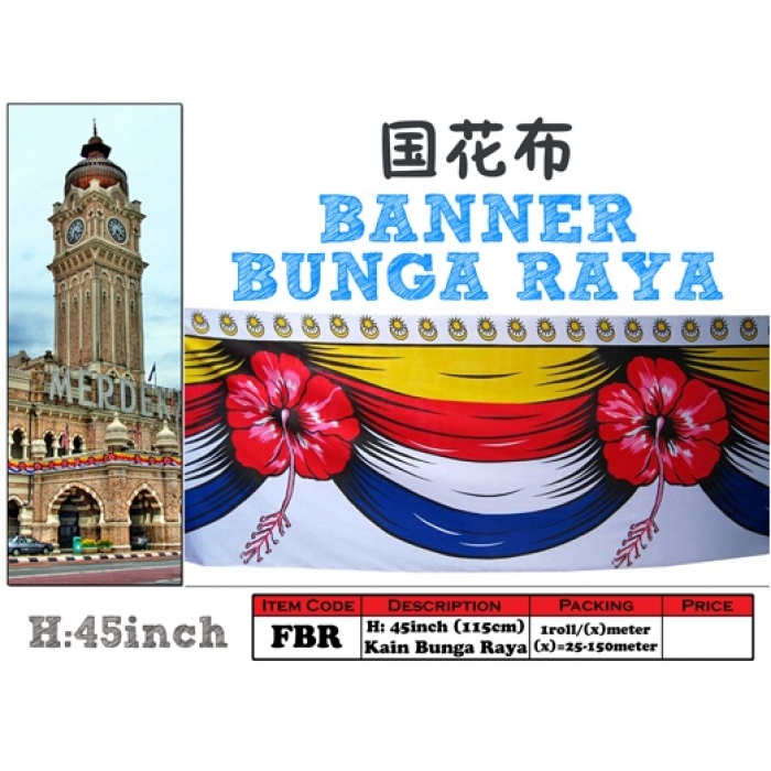 Please note that this item sell in Meter1 Quantity = 1 MeterFBR Banner Bunga Raya Malaysia Size: H: 45inch x (X) Meter 1roll/25-150meter