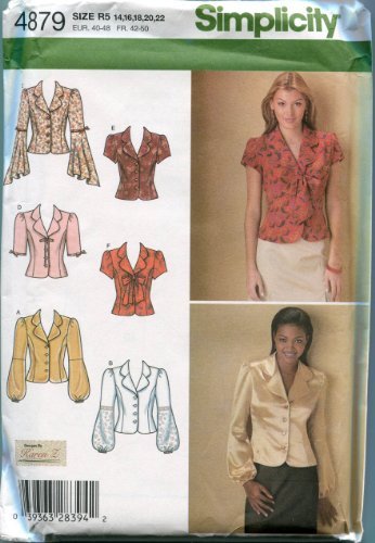 -. Title : Simplicity Sewing Pattern 4879 Size R5 (14,16,18,20,22) Misses' Blouse with Sleeve Variations