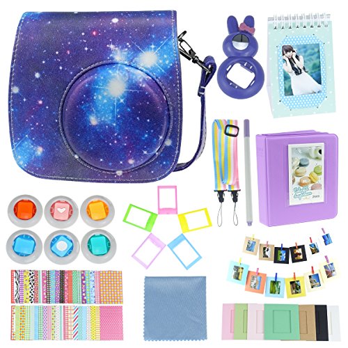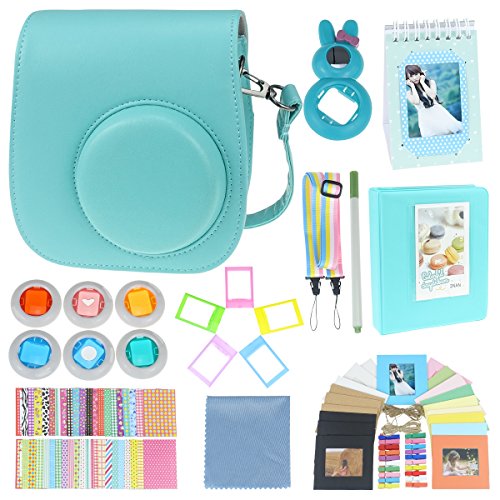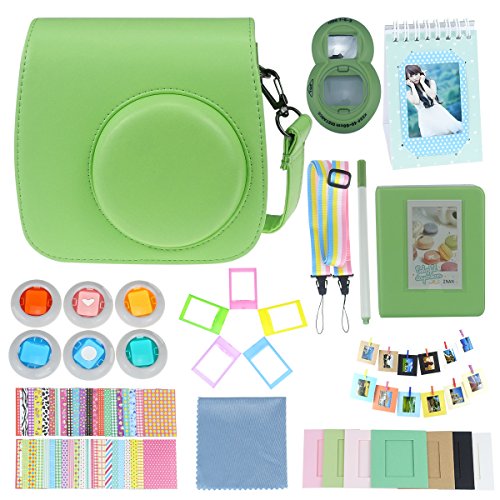 INSTAX ZUBEHOR - Die Kaka Instax Zubehor enthalten 1 x Kaka Mini 8 Kameratasche, 1 x Fotoalbum, 1 x Regenbogen Schultergurt, 2 x hangende Bilderrahmen, 1 x Nahaufnahme Objektiv fur Selbstbedienung, 6 x bunte Filter, 1 x Tischbild Rahmen, 2 x Aufkleber fur Instax Mini 8 Film, 1 x Farbstift, 1 x Tischkalender Rahmen, 1 x Objektiv Tuch