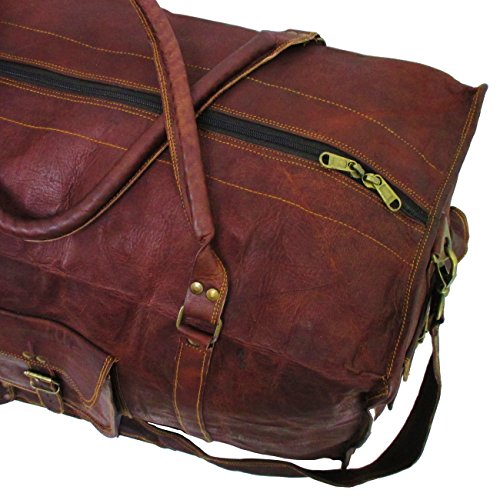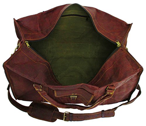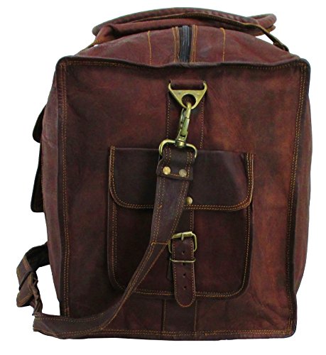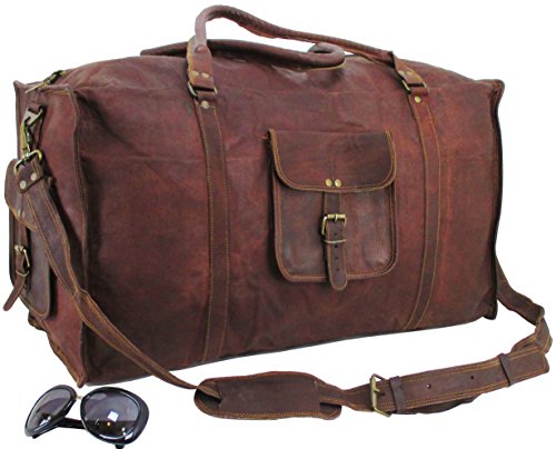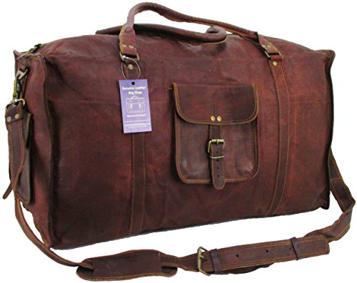 -. Brand : Genuine Leather Bag Shop -. ClothingSize : 21 inches -. Color : Brown -. Department : Mens -. Feature : Leather has been naturally processed and sun tanned to give each handcrafted bag a rich, rustic, antique look and feel and natural water resistant finish. The natural variation in leather as well as hand finishing gives each bag a unique texture and color tone, no two bags will look exactly the same. / Leather characteristics, as well as scratches, blemishes and small scars are evidence of leathers natural beauty and should not be considered defects. Leather softens and darkens with use. New leather odor fades within 4-6 weeks of regular use. / Full length zipper closure across the top. Dual exterior end pockets. Exterior side pocket. Interior zipper compartment. Detachable, adjustable shoulder strap with shoulder pad. Antique brass hardware. Fully lined with sturdy green canvas. / 21" x12"x9" Dimensions , 52" Detachable, adjustable shoulder Strap with shoulder Pad, Handle Drop 12" (measurements approximant) / Strong . Durable . Supple . Light weight . Naturally Distressed . Vintage Style . Hand Crafted . Suitable Flight Carry On Size . Prompt shipping -. Model : VDB 1009 SQ 21x12x9 1Z -. NumberOfItems : 1 -. PackageQuantity : 1 -. ProductGroup : Apparel -. ProductTypeName : LAGE -. Size : 21 inches -. Title : Genuine Leather Bag ShopTM 21"x12x9 Vintage Style Carry On Weekender Travel Duffel