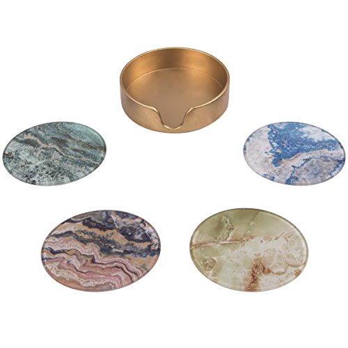 4-PIECE COASTER SET-And each has its beautiful stone texture pattern with golden rim which makes you get closer to nature.
