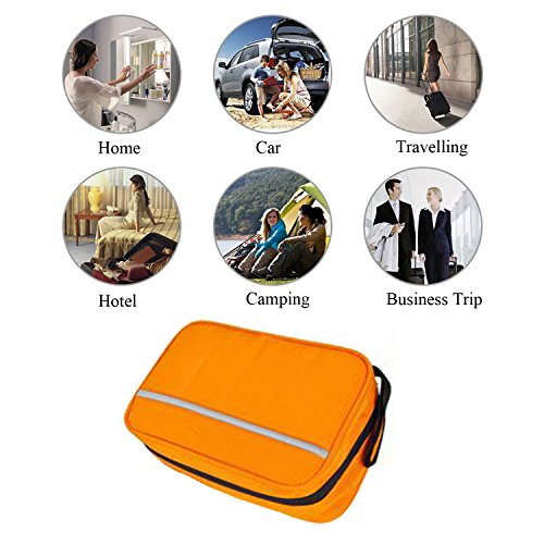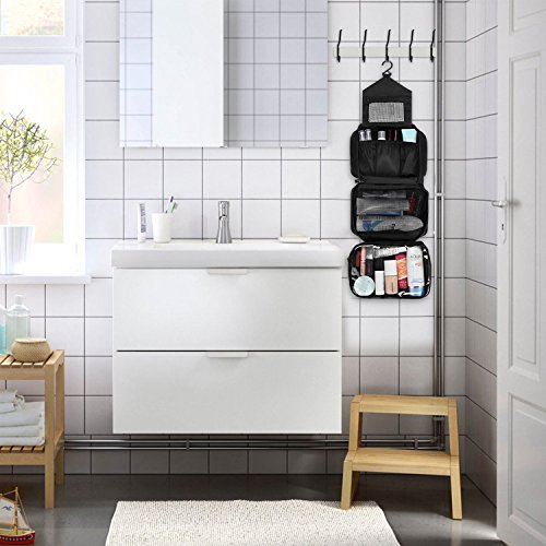 - The toiletry kits has a hook on the top of the bag, you can hang it on any place that you want it to. This toiletry bag is made of oxford fabric, waterproof and scratch resistance.
