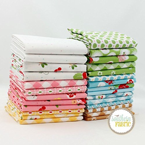 Riley Blake Sew Cherry Half Yard Bundle (27 pcs) by Lori Holt for 18 x 44 inches (45.72cm x 111.76cm) fabric cuts DIY quilt fabric