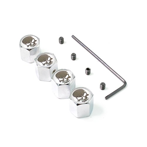 iDoood Anti-theft Car Wheel Tire Valve Stem Cap Universal With Tool (Logo:Dark Skull)
