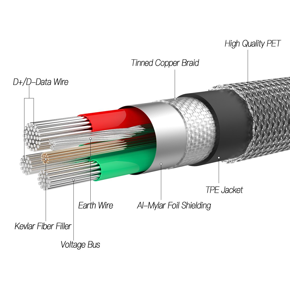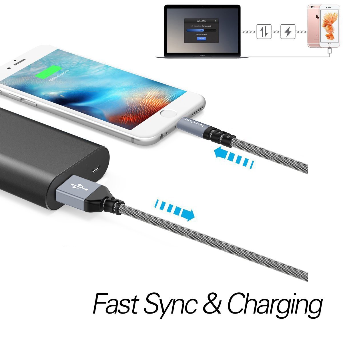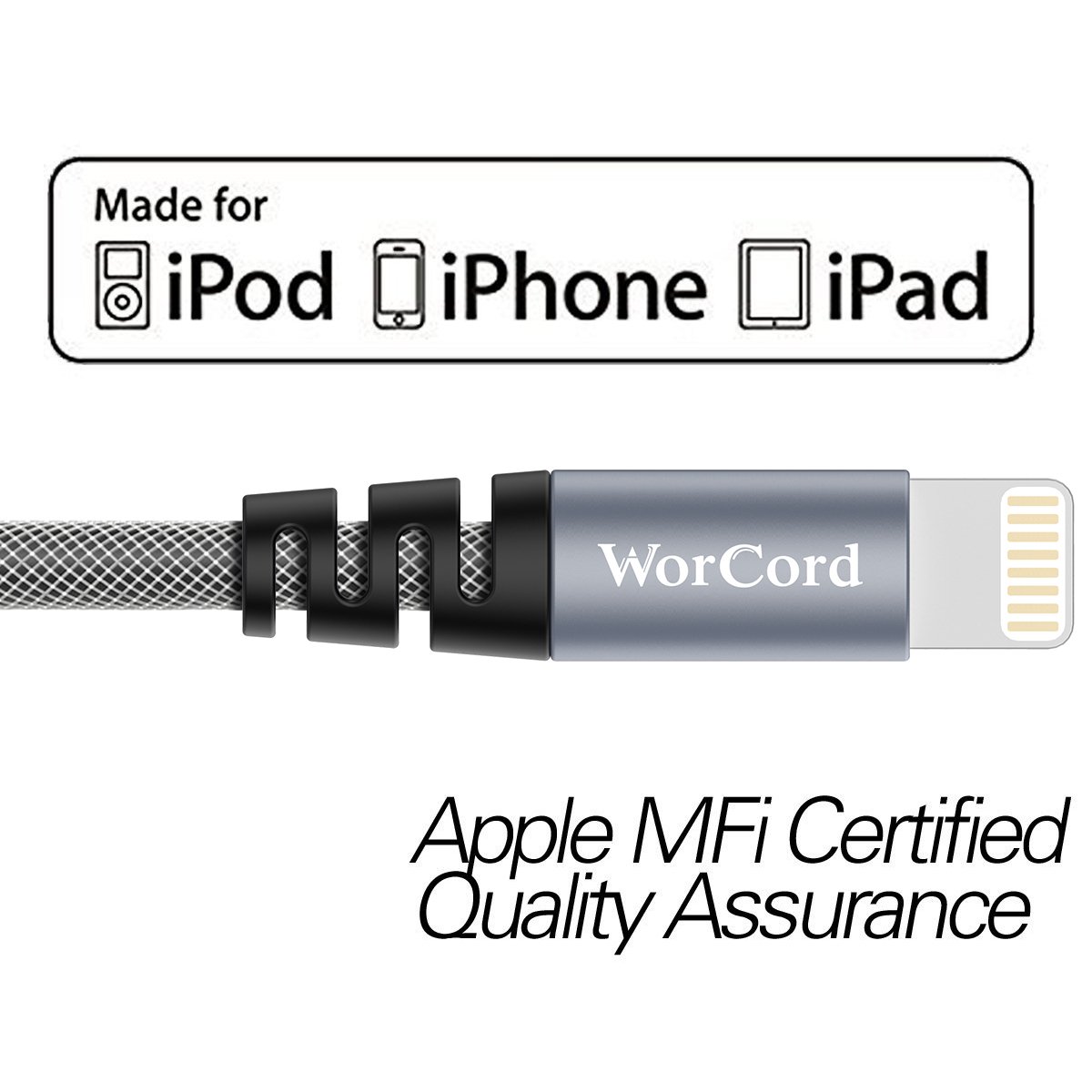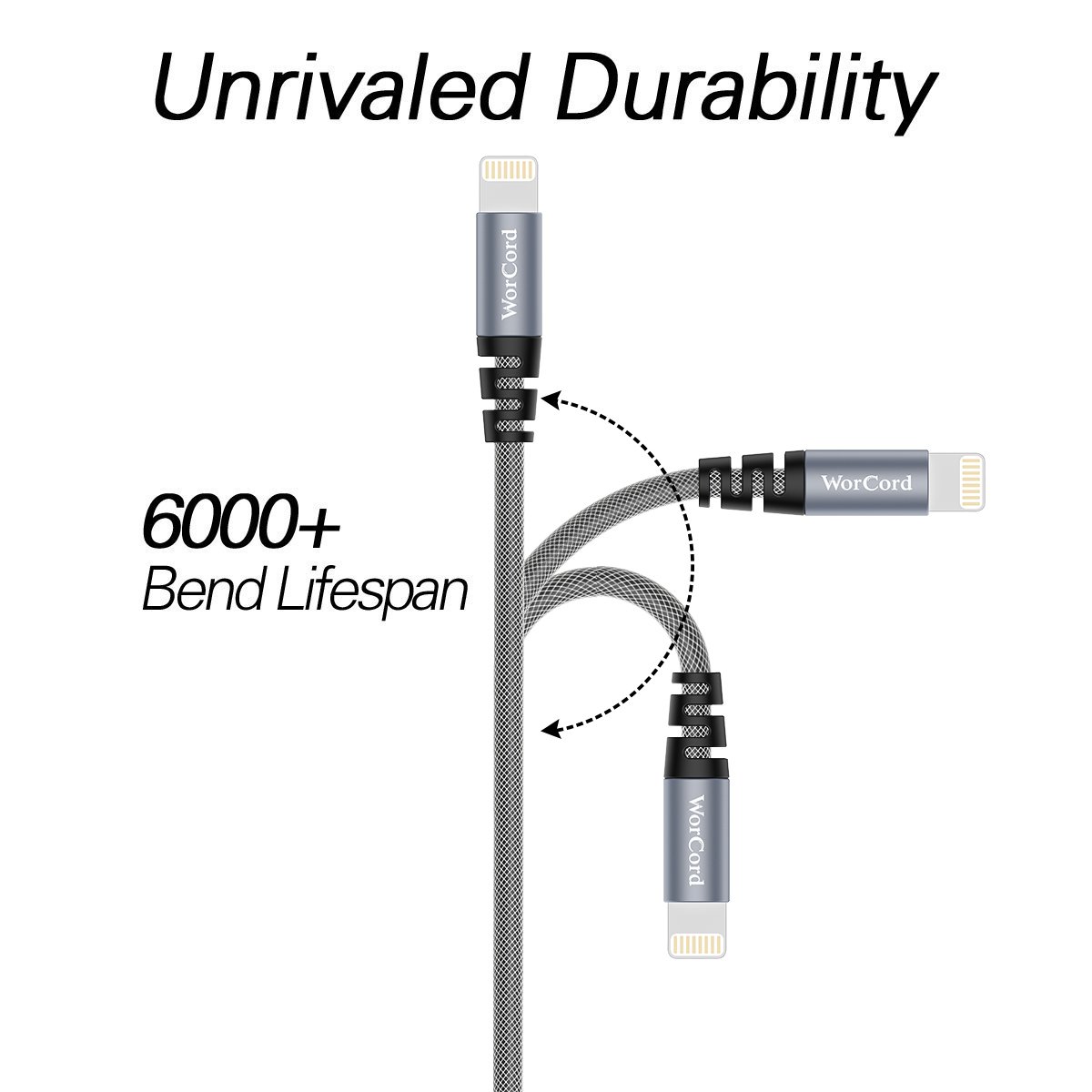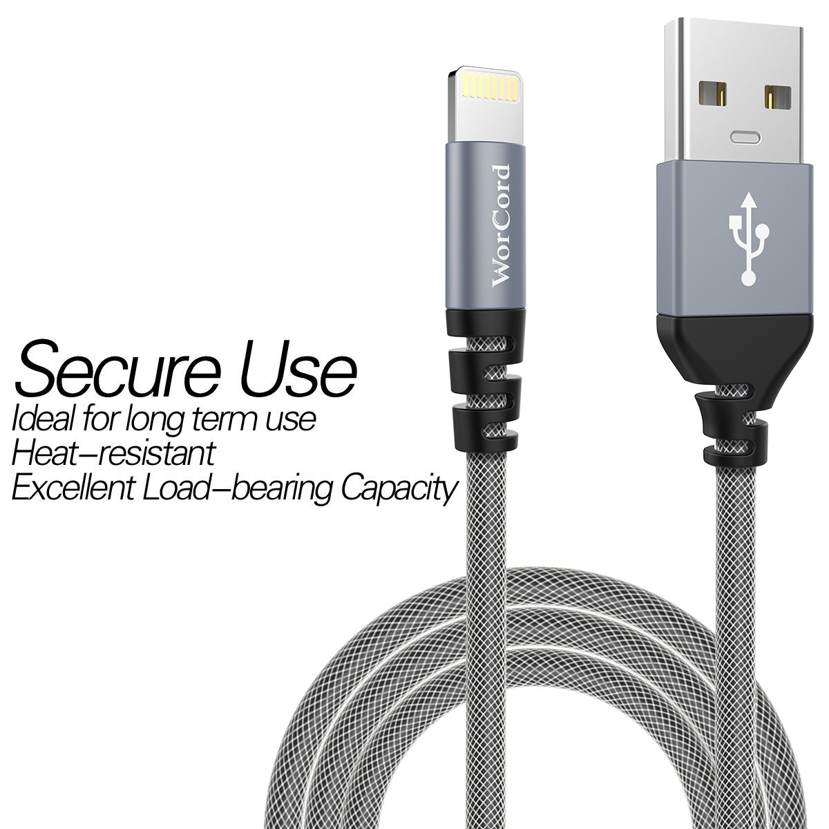 WorCord Lightning cable is aluminum coated with nylon knitted cable part, it is difficult to break the film like ordinary cable.