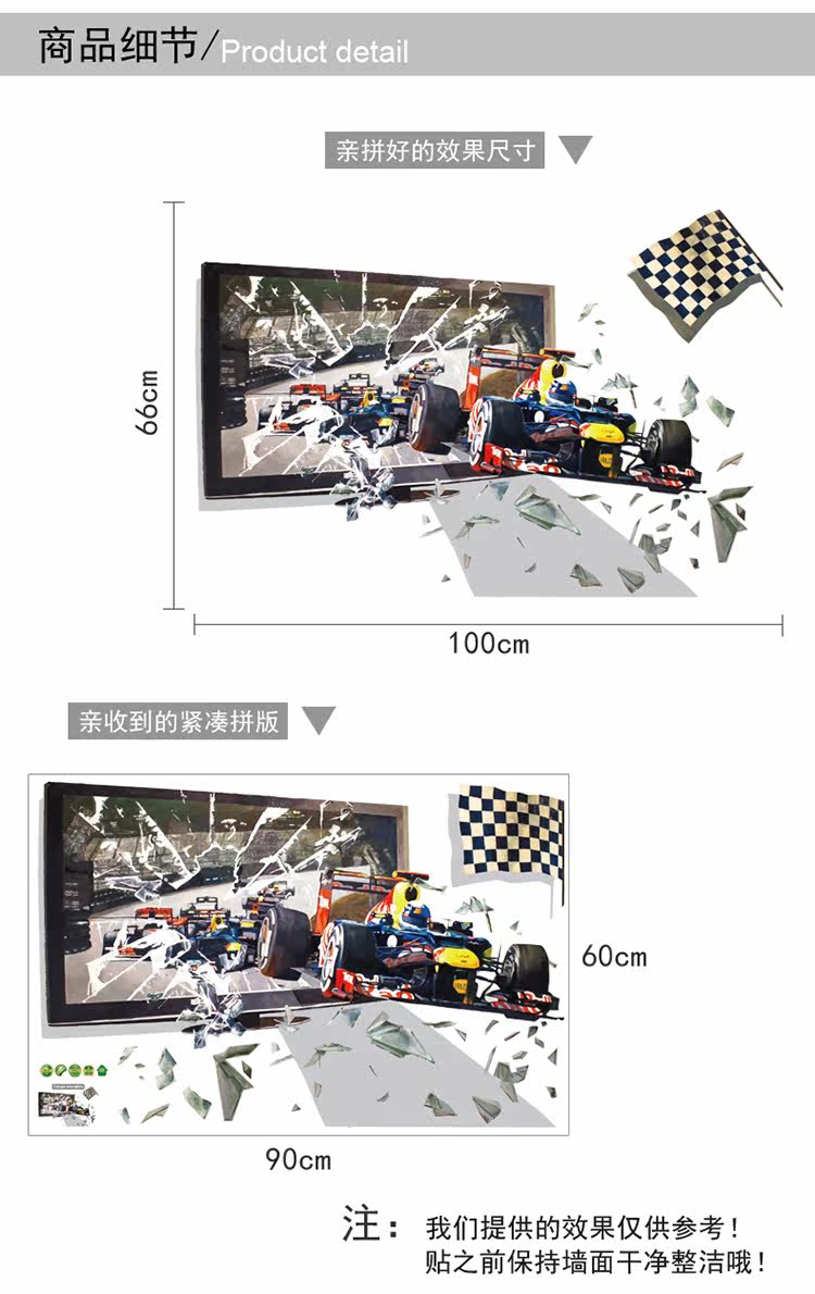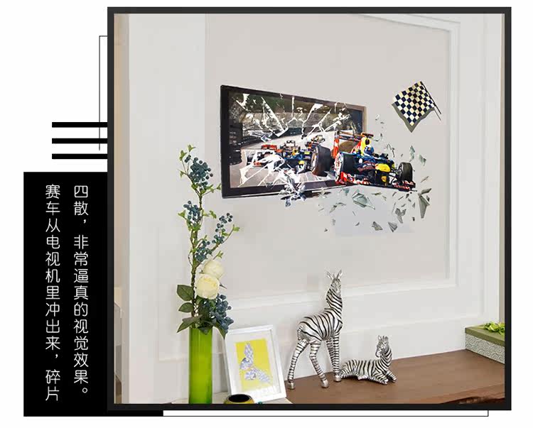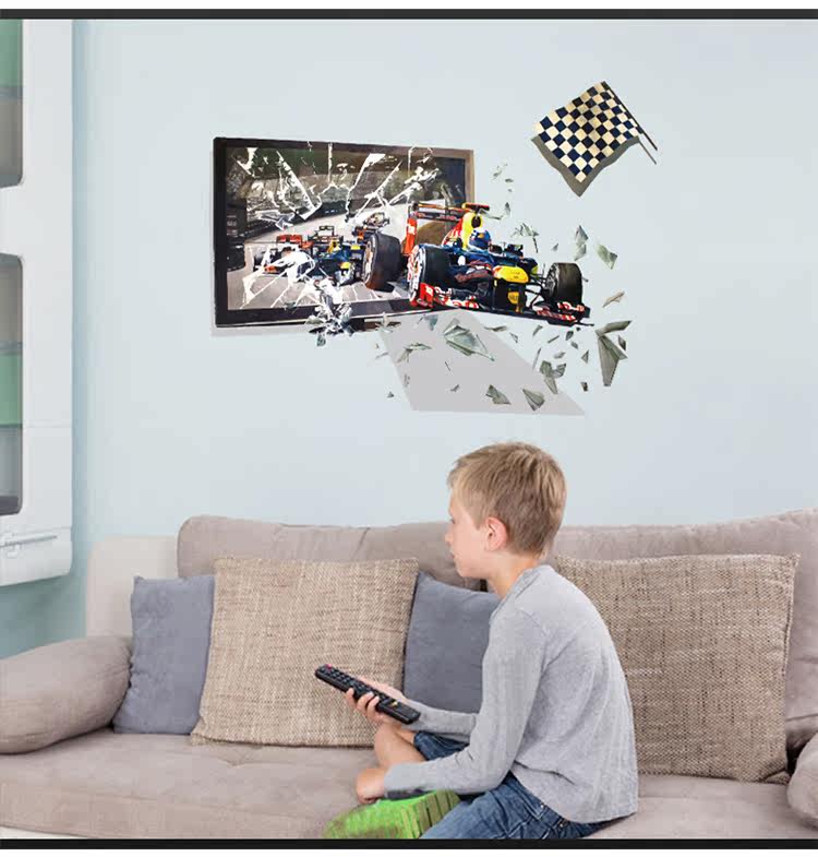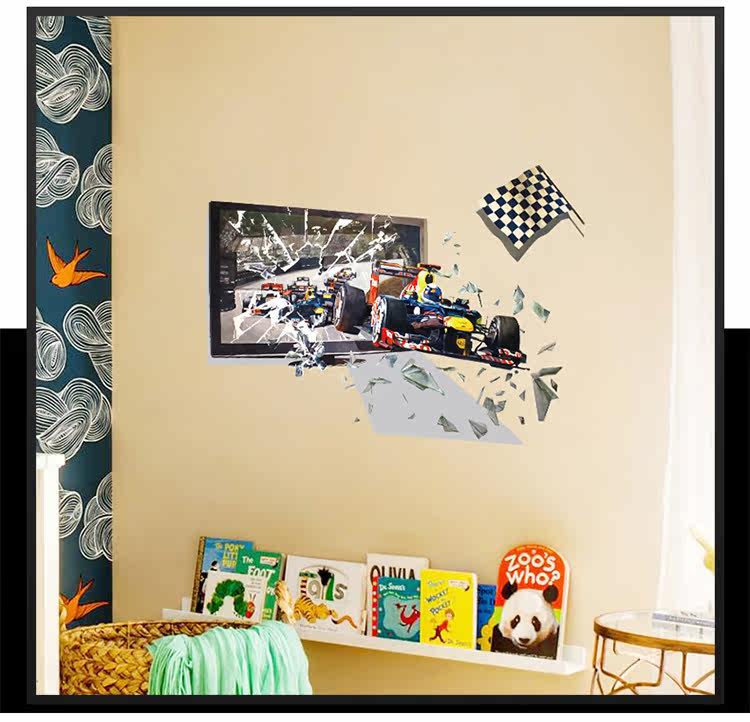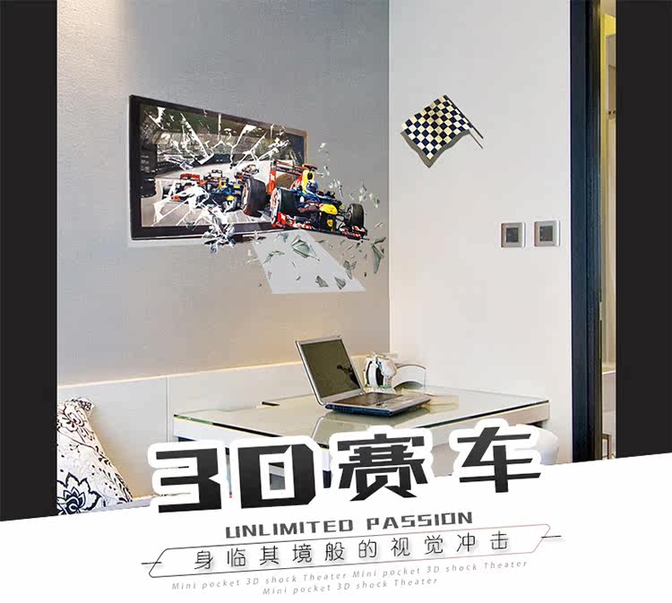 创意3D立体视觉赛车儿童房卧室学校寝室床头装饰自粘墙贴纸贴画