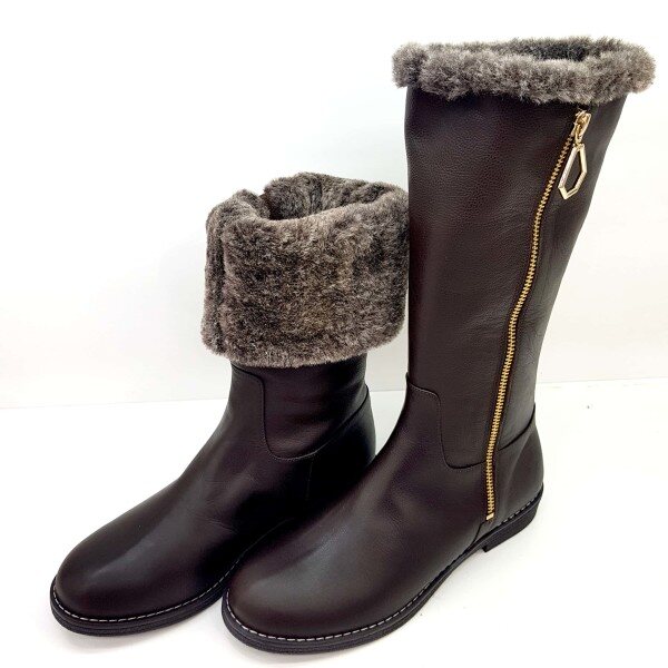 ◆ POINT : 금속 포인트 장식이 데코된 몰드 단화 하프부츠 전체 퍼와 기모내피가 적용되어 보온성이 우수한 제품. 부츠용 MOLD창을 사용하여 착화감이 편안함.