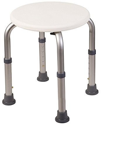 Healthline Trading Round Stool Bath Bench Adjustable Height Lightweight Shower with Non-Slip Seat, White