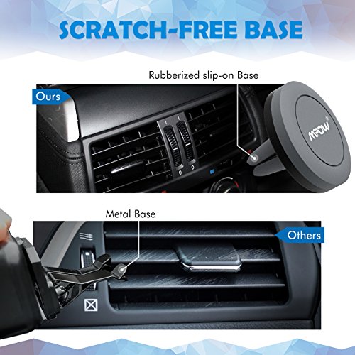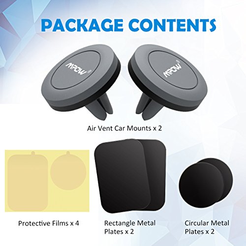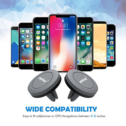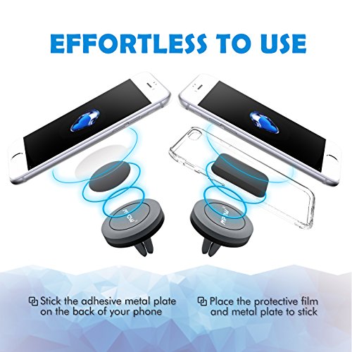 2 PACK MOUNT HOLDER FOR EASIER USE: Designed with a sturdy rubber base and a powerful magnetic head for holding smartphones, our air vent universal car mount holder is much easier to use than others due to its simple and complementary design. 1 backup for instant replacement.