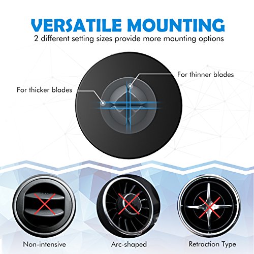 Dual Setting Clip Mpow car mount holder offers two thickness settings to ensure a secure fit onto your air vent. One is for thin air vent blade, the other is for thick air vent blade.