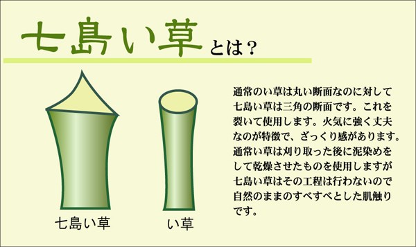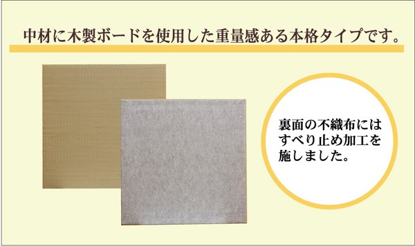 表地=七島い草 中材=ウレタン3mm+木製ボード 裏=すべり止め不織布