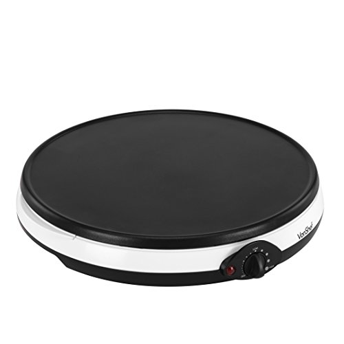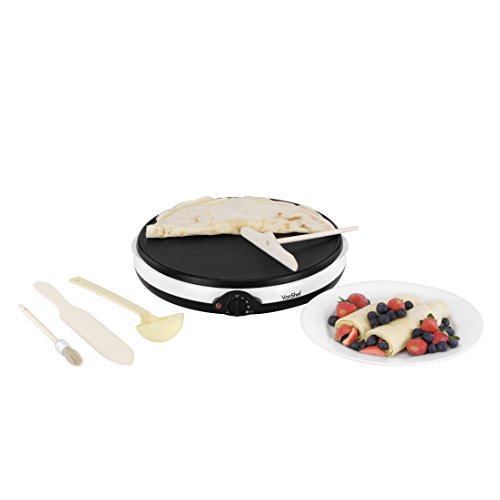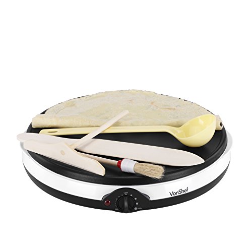 VonShef Electric Crepe and Pancake Maker with Batter Spreader, Oil Brush, Wooden Spatula and Ladle