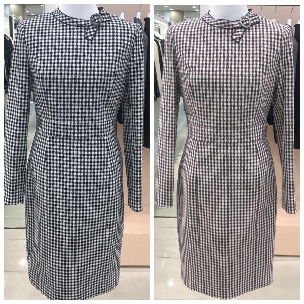 H라인 기본 슬림핏으로 넥라인에는 큐빅으로 포인트를 주어