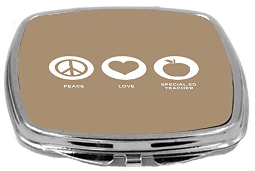Rikki Knight Peace Love Special Ed Teacher Design Compact Mirror, Brown, 2 Ounce