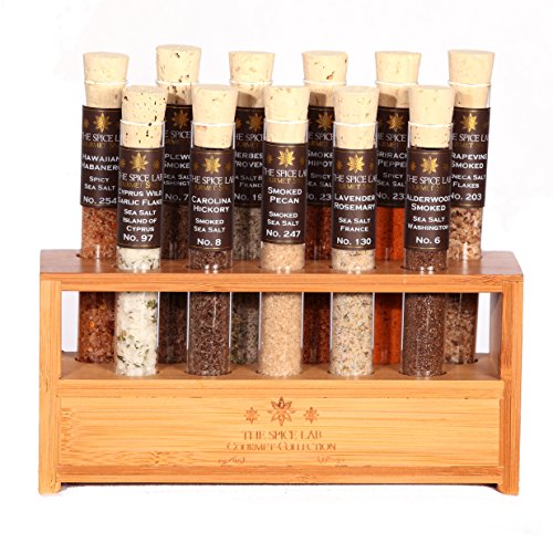 The Spice Lab BBQ Smoked Salt Premium Gourmet Sample Salts Collection - Pyrex Tubes - Taste the world of salts - 11 Tubes