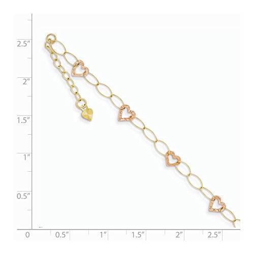Solid 14k Gold Two-tone Adjustable Heart with 1 extension Anklet 9" (6mm)